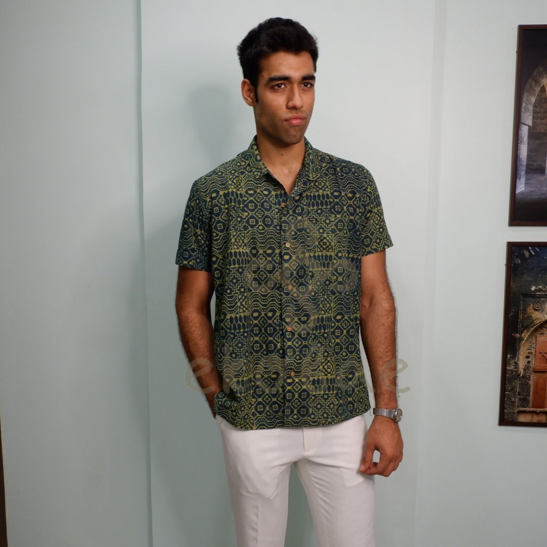Elevate your wardrobe with Ekobae's Dabu Hand-Block Geometric Shirt. Order yours today and experience the Dabu dance!