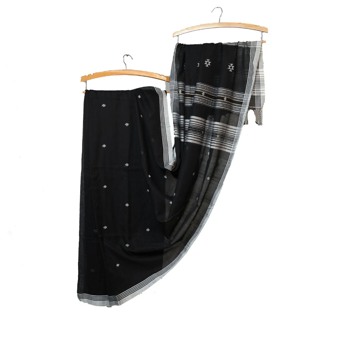 Immerse yourself in the captivating world of Ekobae's Handloom Chatia Saree, a masterpiece of geometric precision and artisanal charm.