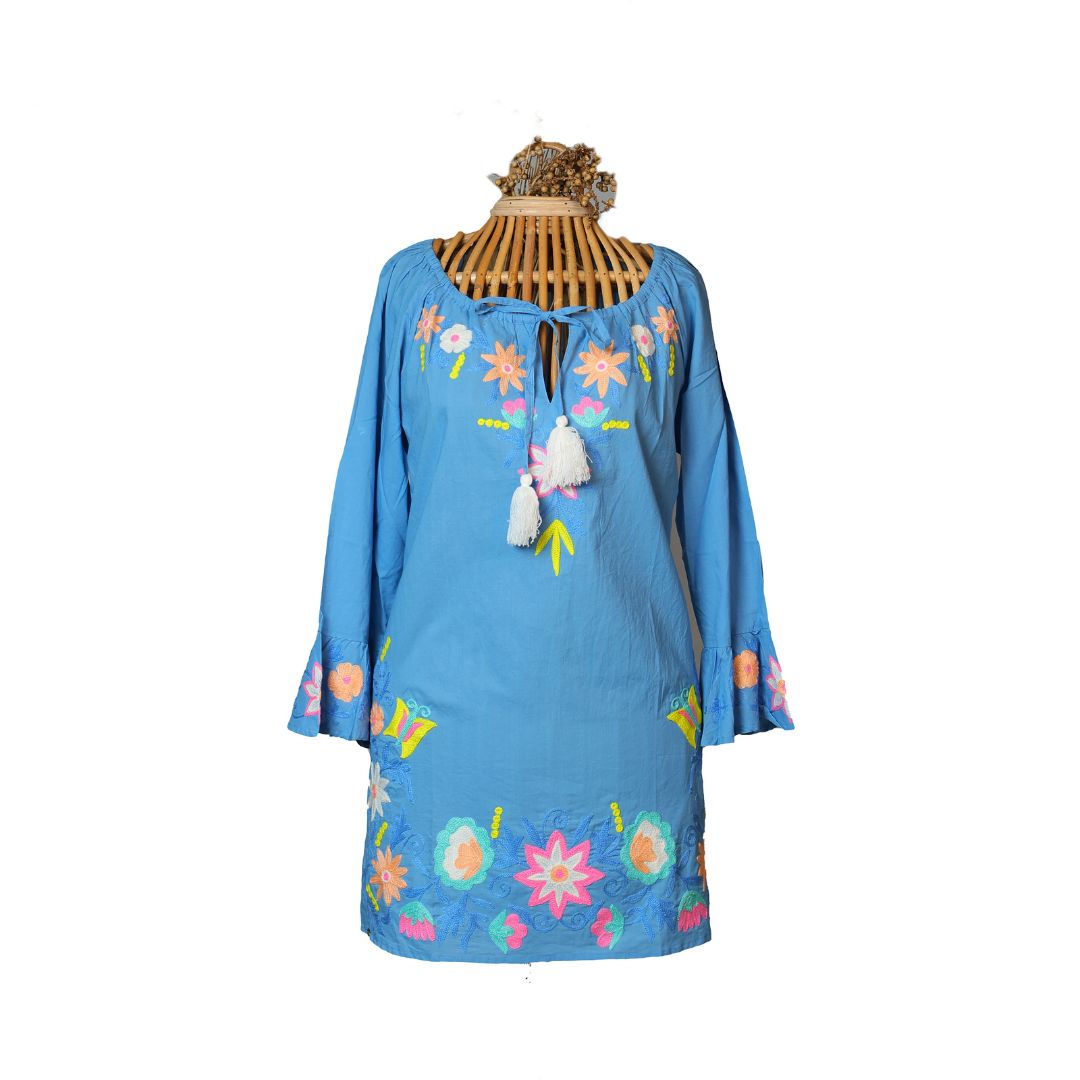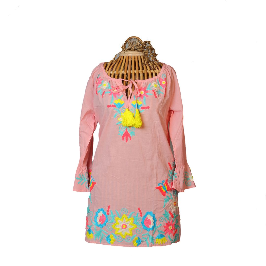 Indulge in the luxurious and sustainable style of our embroidered pure cotton short kurta/dresses. Every piece is meticulously handcrafted with sustainable thread, making it not just a fashion statement, but an ethical choice. Elevate your wardrobe with this exclusive and elegant addition.