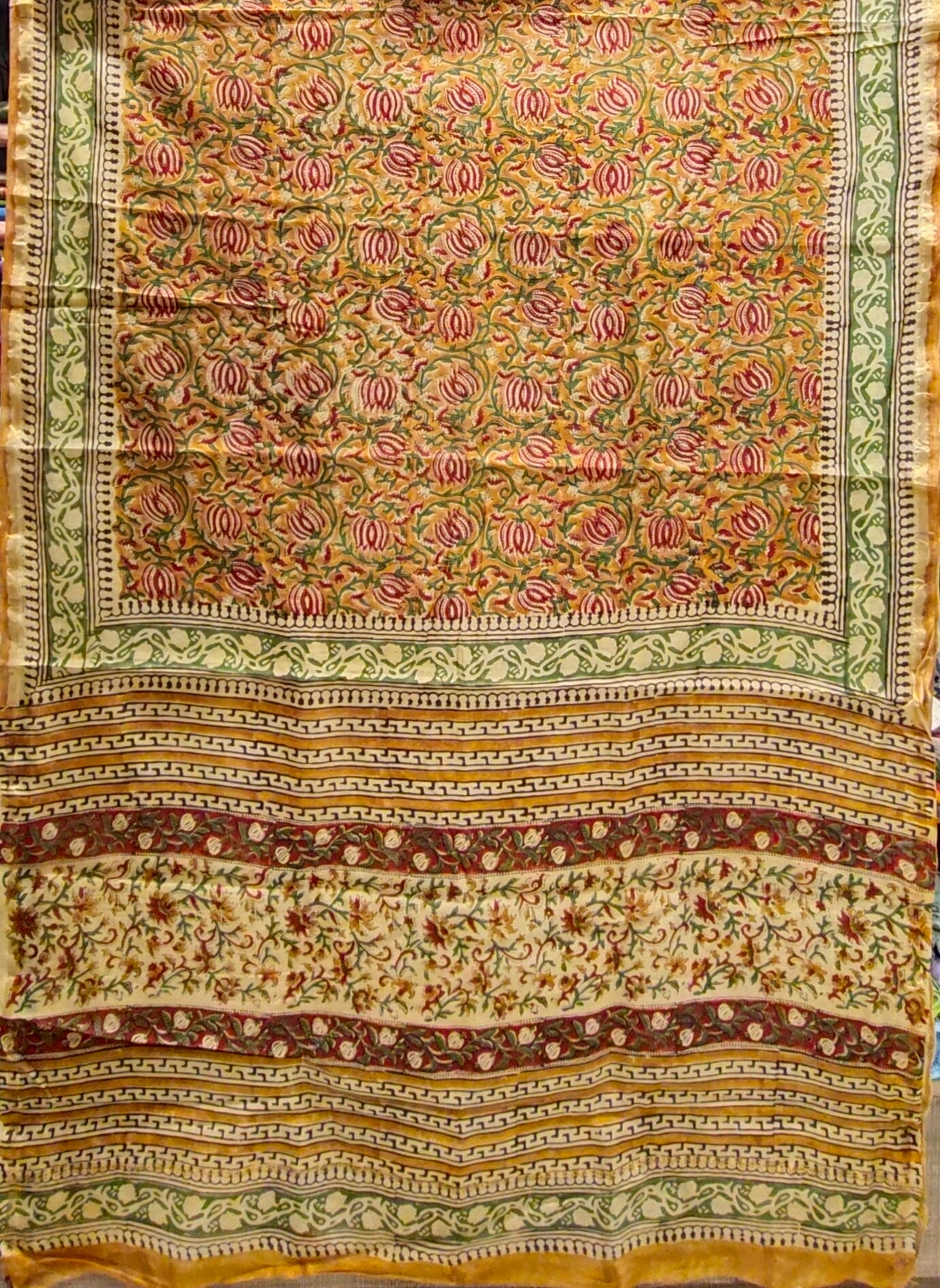 * Intricate Hand Block Printing: Admire the vibrant colors and intricate designs created through traditional hand block printing techniques.