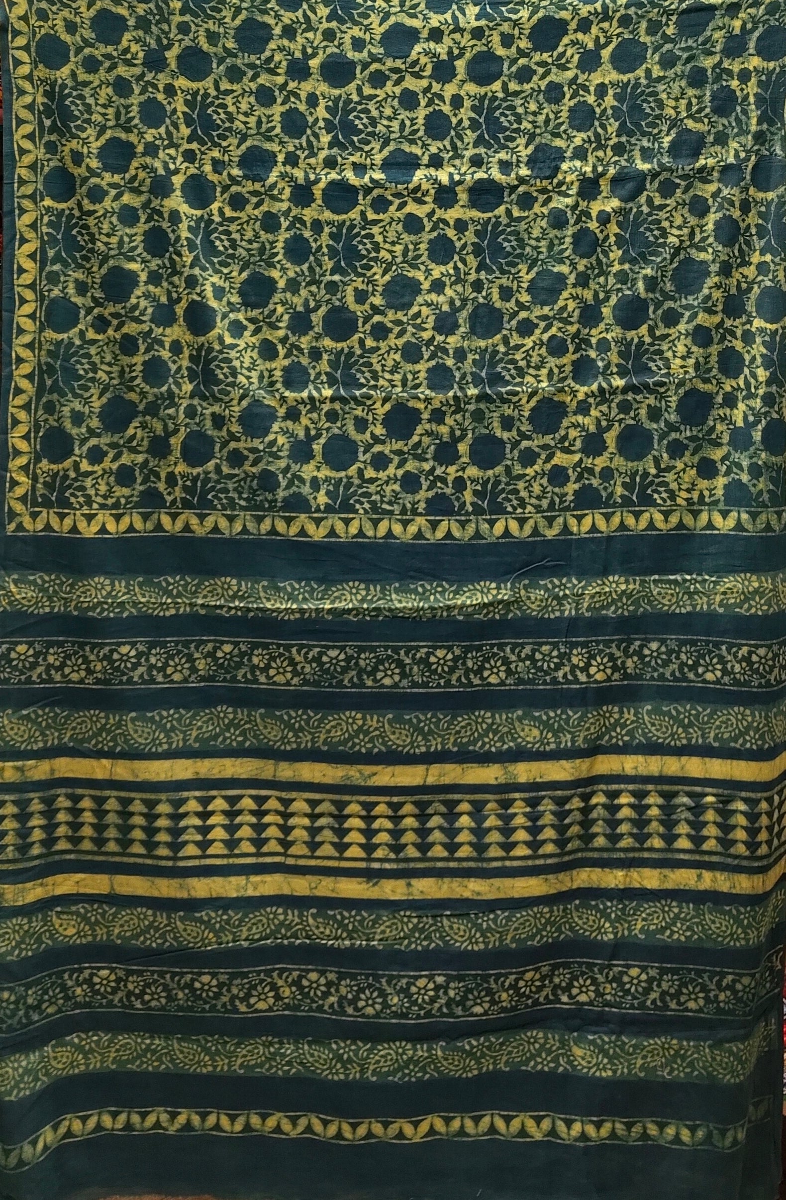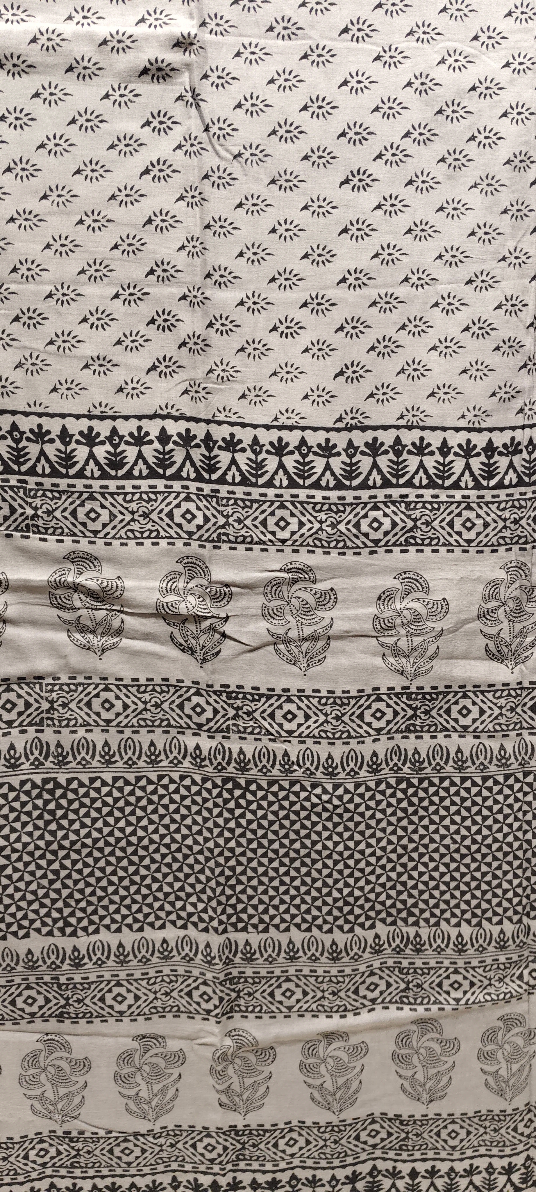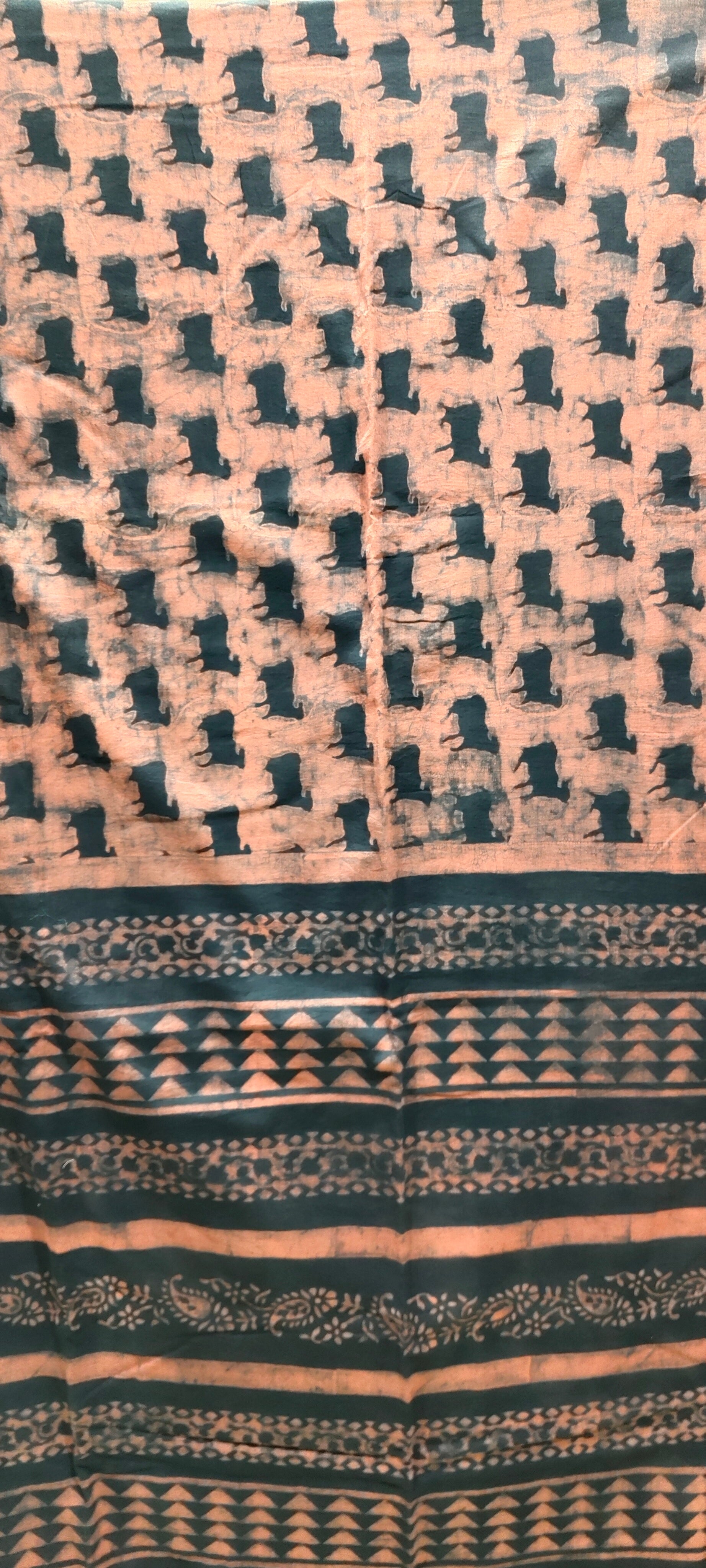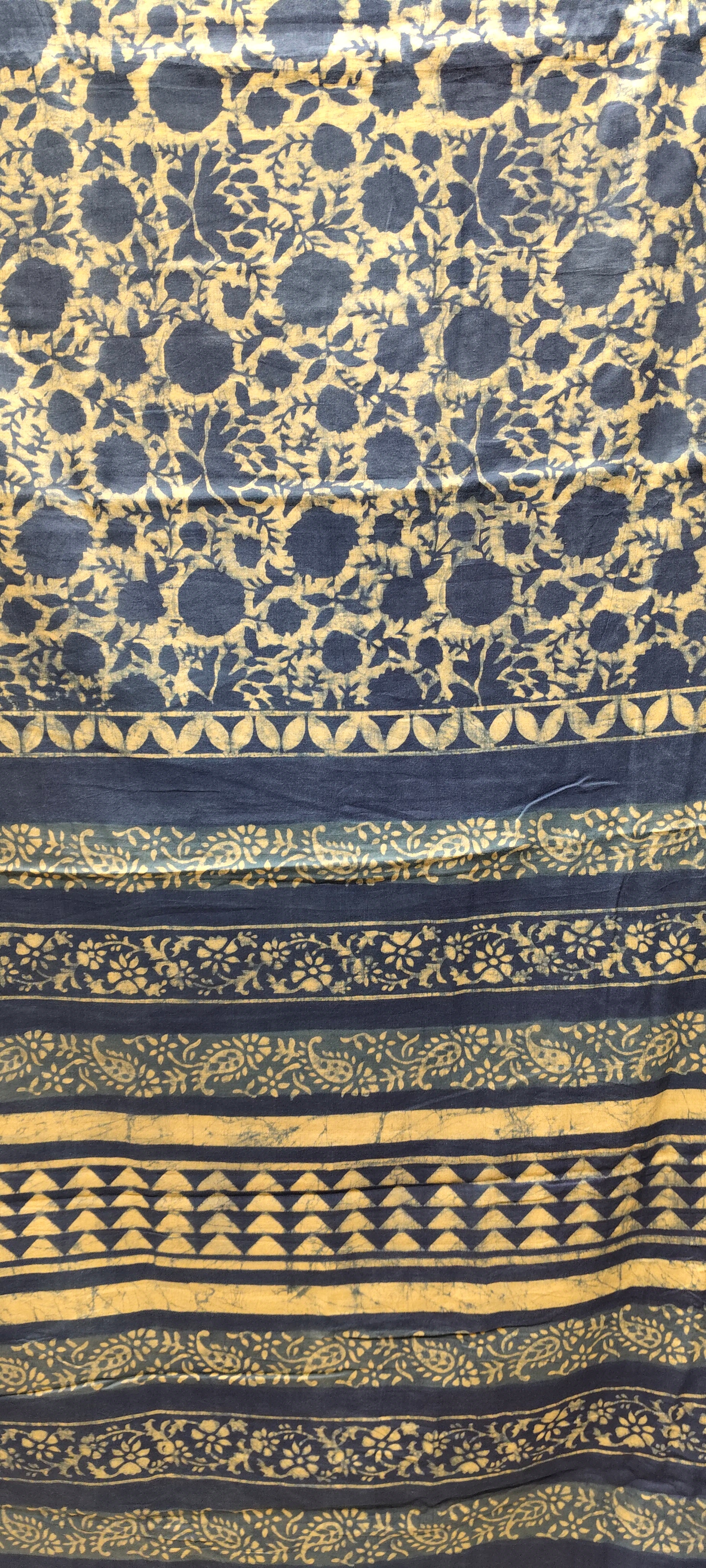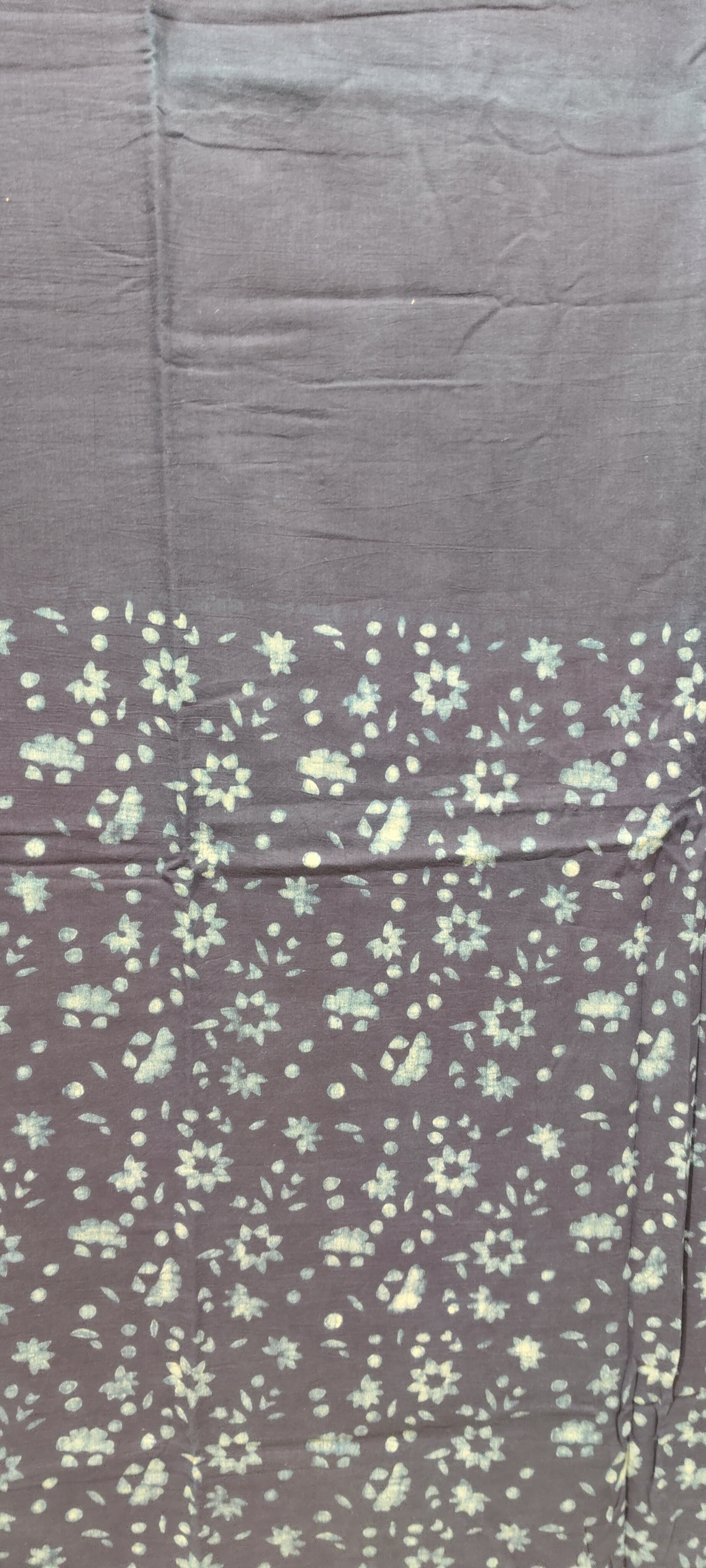 Dabu hand-block printing, a centuries-old technique, adorns the saree with intricate patterns and motifs. Natural dyes used in the process create a unique, earthy aesthetic.