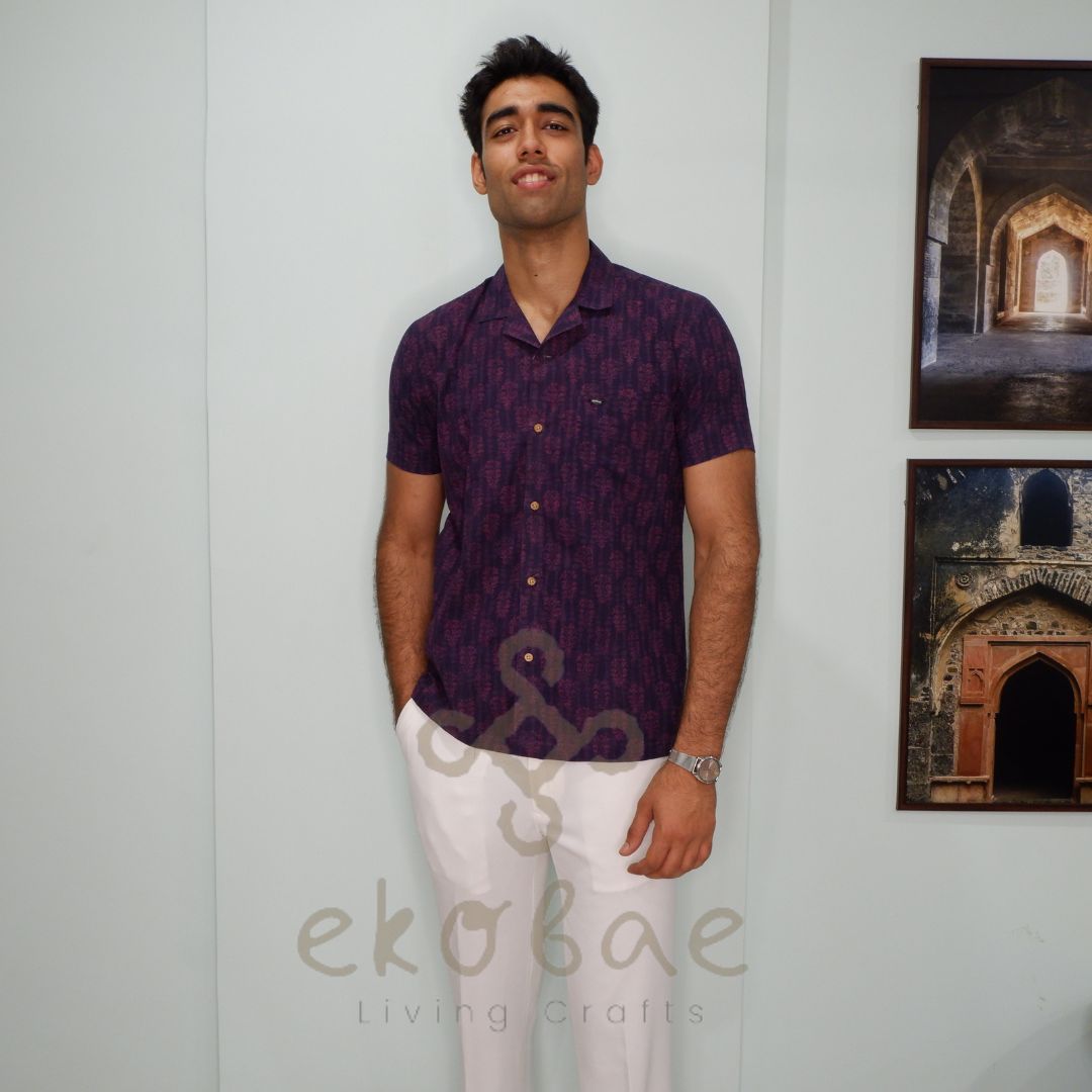 Make a statement and embrace summer style with Ekobae's Hand-Block Men's Shirt in Purple & Magenta. Order yours today!